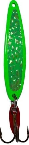 Use a #2, 3, 4 or 5 Swedish Pimple, Flute Spoon or Vingla for best results on pan fish and game fish in shallower waters. Used with a lift, fall and pause retrieve, they are good spinning spoons for all game and pan fish. To use as a spinning lure with a straight I or interrupted retrieve, reverse the location of the red flipper for more kick to the lure (i.e. remove the flipper and reinstall it on the flat side of the Pimple). A bonus Single Baiter Hook and Flipper is supplied with sizes 2,3 and 4.