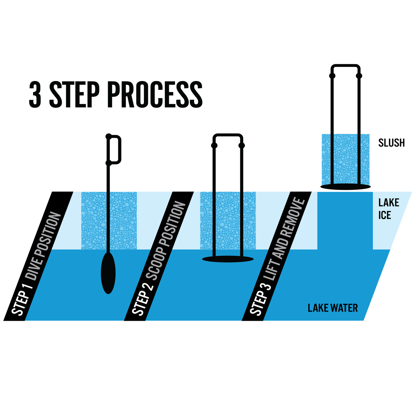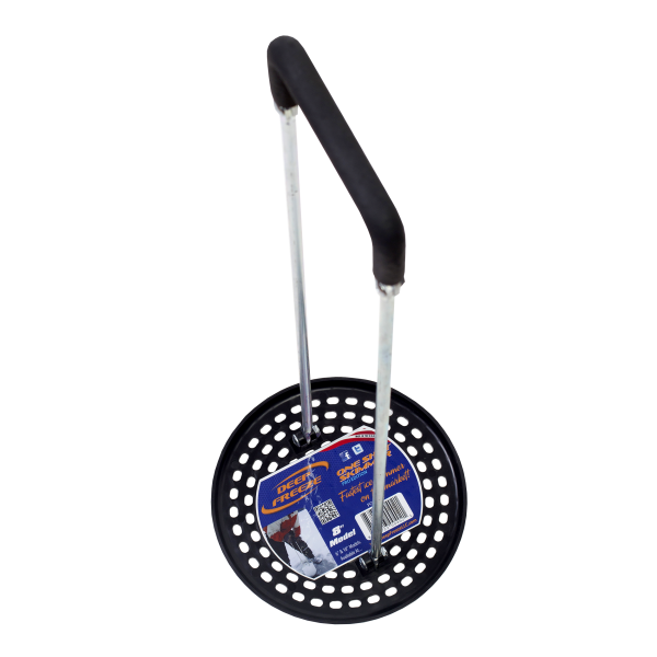 Had enough of the seemingly never-ending process of scooping the slush out of your ice fishing hole? Tired of wasting valuable time when you could be catching more fish? DEEP FREEZE introduces the One Shot Ice Skimmer–Pro Edition. This time-saving and portable ice skimmer is the solution to your problem. Forget those high-priced alternatives. The interchangeable bottom plate allows for use on 6”, 8”, and 10” auger holes.