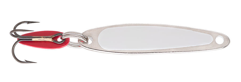 Use a #2, 3, 4 or 5 Swedish Pimple, Flute Spoon or Vingla for best results on pan fish and game fish in shallower waters. Used with a lift, fall and pause retrieve, they are good spinning spoons for all game and pan fish. To use as a spinning lure with a straight I or interrupted retrieve, reverse the location of the red flipper for more kick to the lure (i.e. remove the flipper and reinstall it on the flat side of the Pimple). A bonus Single Baiter Hook and Flipper is supplied with sizes 2,3 and 4.