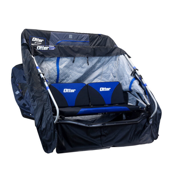 Otter XTR X-over shelters feature an industry first reclining bench seat that provides added versatility to already best-in-class comfort. Each side of the split bench can recline independently, creating more space for a workstation and quicker access to your gear. Better yet, recline both sides to form a flat bench for midday lull naps or overnight ice camping excursions.